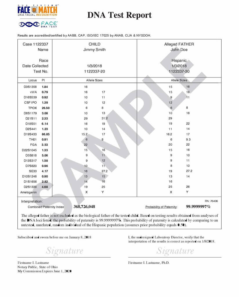We provide a variety of DNA testing options for you, ranging from Facial Recognition DNA Testing, paternity tests, immigration testing, noninvasive prenatal tests and much more.  Our legally admissible paternity test costs $299. Our Facial Recognition Services start at $38.